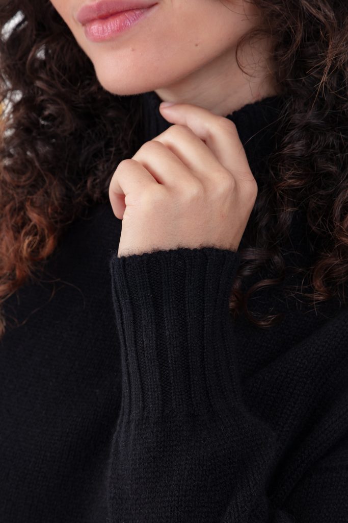 Sweter z półgolfem z 6-warstwowego kaszmiru. Szerokie ściągacze i lekko luźny krój sprawiają, że jest to nowoczesny i wyrafinowany element garderoby.