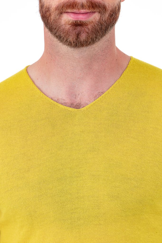 Niezwykle miękki sweter z dekoltem w szpic, wykonany z bardzo cienkich kaszmirowych włókien. 1 kilogram przędzy ma łącznie aż 60 km długości. Model można nosić bezpośrednio na ciele podczas ciepłych zim lub chłodnych wiosennych wieczorów. Doskonały na spacery nad morzem.