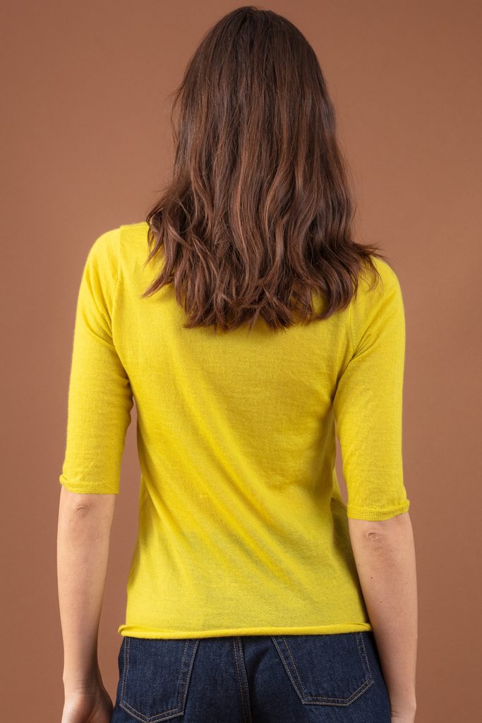 Soft and refined, the PALMA women’s jumper in cashmere down delights with its exceptional lightness and versatility. Knitted in 100% 2-ply cashmere down, it offers a delicate, fluid knit, perfect for wearing directly against the skin. Its originality lies in its reversible neckline: a round neck on one side and a V-neck on the other, allowing you to vary your style at will. Three-quarter sleeves and a straight cut give it a modern and feminine appeal.