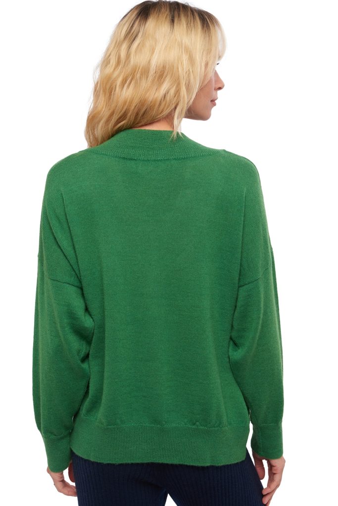 Ekstra szerokie wykończenie oraz mocne wycięcie dekoltu w serek dodają charakteru w tym modelu z alpaki. Świetnie pasuje do dżinsów lub do spodni.