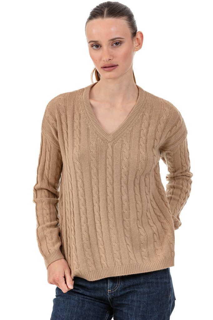Elegant and timeless, the PYLA women’s jumper enchants with its cable knit and refined style. Crafted in 100% 4-ply cashmere, it offers a perfect balance of warmth and comfort. Its wide straight cut and V-neck make it a feminine, versatile piece.